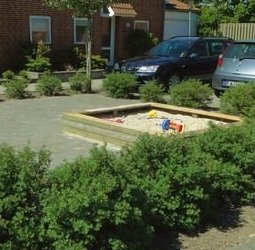 Der er et stort fællesareal med legeplads og et fælleshus. Husene er bygget mellem 1986 og 1990.